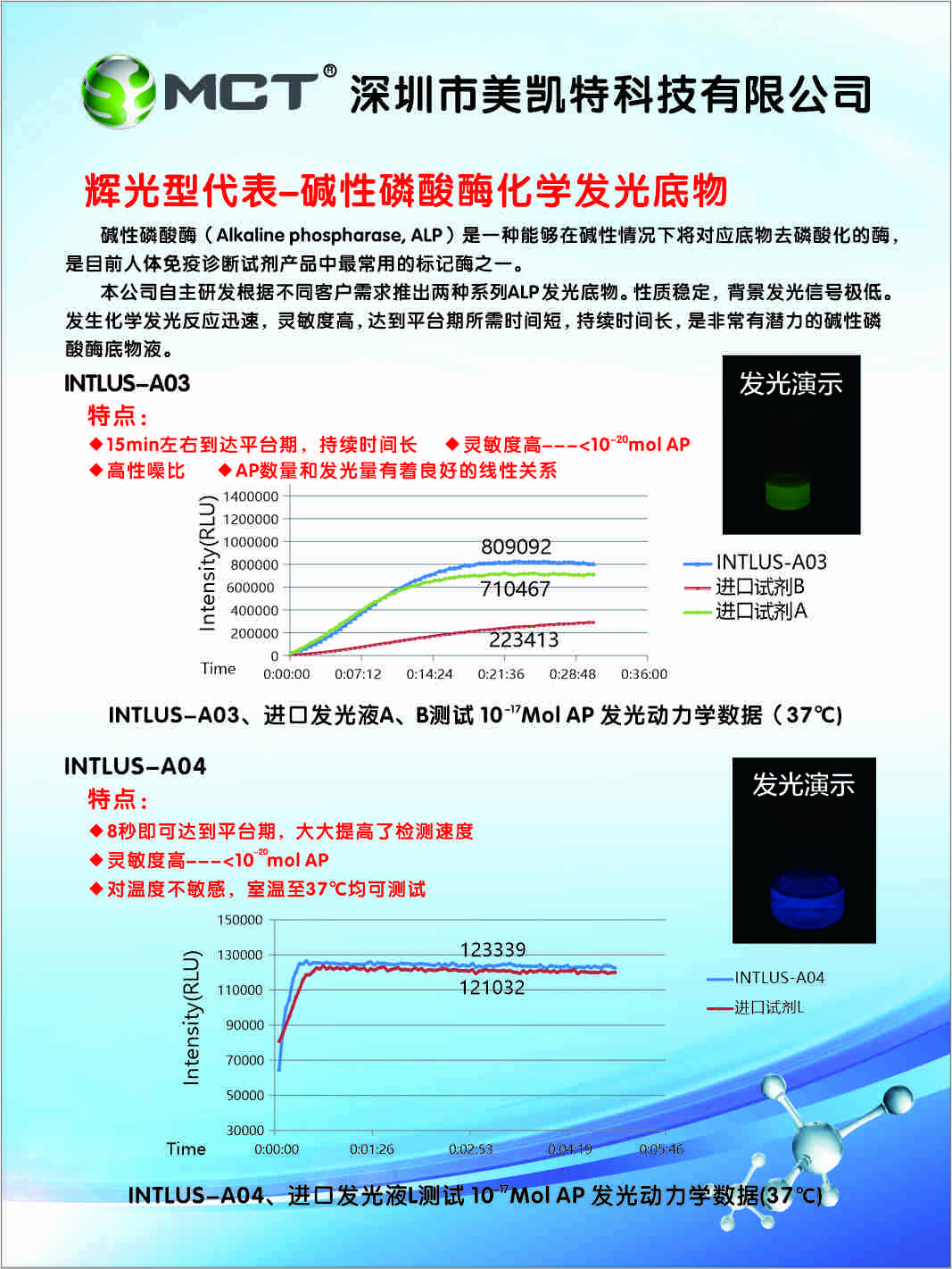 本次展会上,我们重点展示了两大核心产品——化学发光试剂底物与生化血球试剂原料,用专业实力诠释品质担当。其中,化学发光试剂底物涵盖AMPPD、CDP-Star、INTLUS-A03和INTLUS-A04系列碱性磷酸酶底物液、吖啶酯等多种品类,可满足不同客户的多样化需求;生化血球试剂原料则凭借高纯度、高稳定性的优势,助力下游产品提升检测精度,助力打破进口试剂在国内市场的垄断地位。现场,我们的专业团队耐心为每一位咨询者讲解产品特性、应用场景及核心优势,细致解答行业痛点,有幸赢得了现场观众的广泛认可与好评。